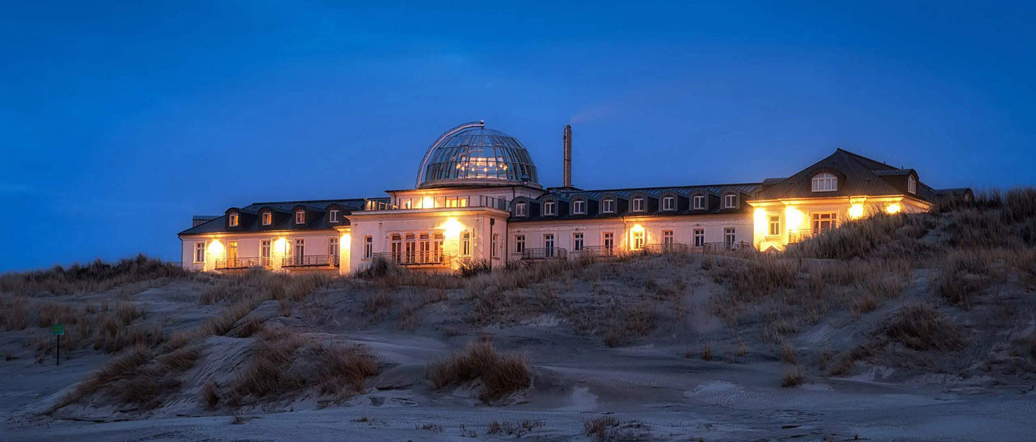 Mit 80 großzügigen Suiten und Appartements in gehobener Ausstattung, dem Restaurant & Bar im imposanten „Weissen Saal“, einem Thalasso SPA und Wellnessbereich mit Sauna, Schwimmbad und Fitnessbereich auf über 2000qm, einer im Sommer geöffneten Rooftop Bar, einem betreuten Kindertreff und Dünengarten bietet das Hotel beste Voraussetzungen für unvergessliche Urlaubstage für Jung und Alt, Familien, Paare, Naturliebhaber und Strandfreunde.